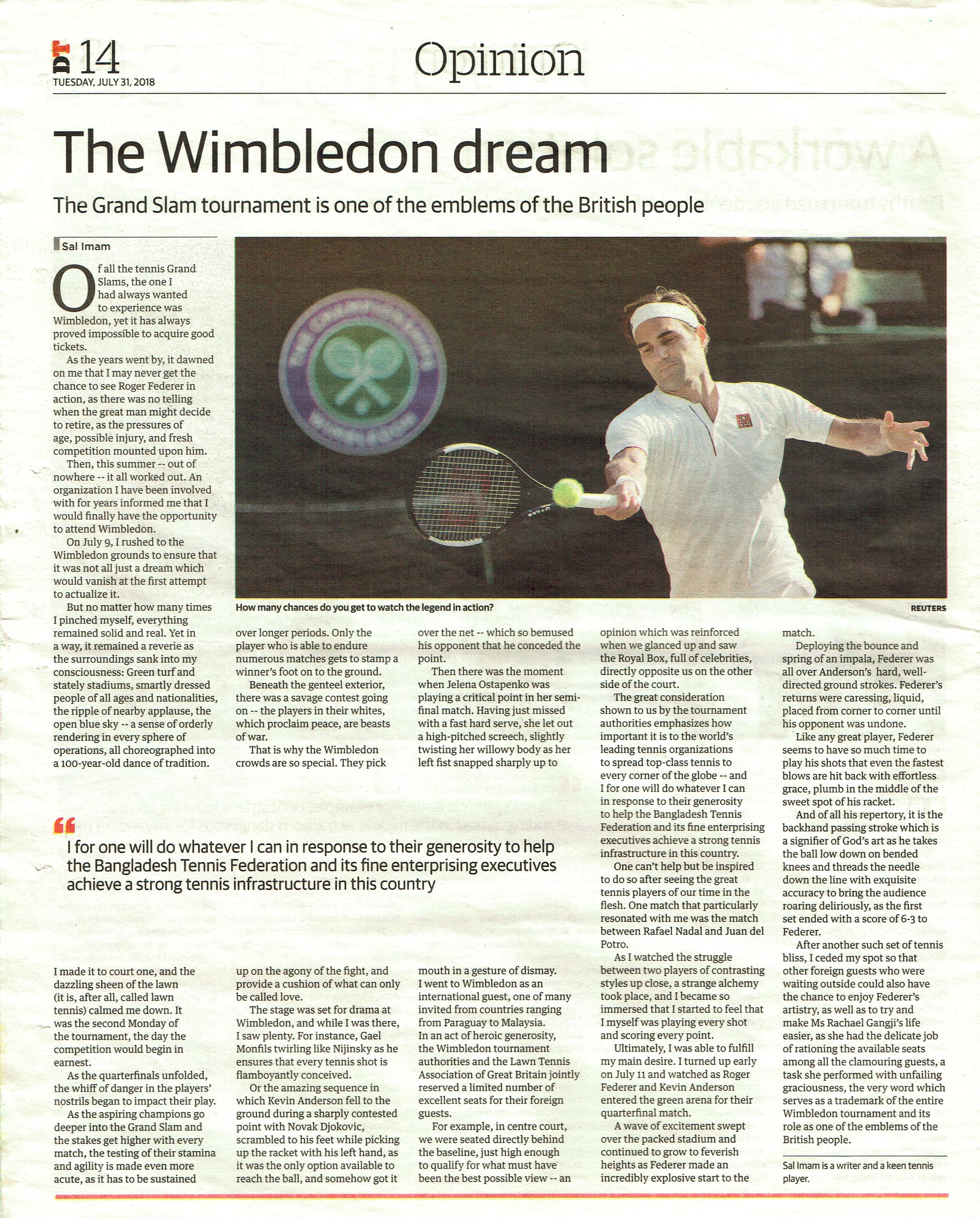 After another such set of tennis bliss, I ceded my spot so that other foreign guests who were waiting outside could also have the chance to enjoy Federer’s artistry, as well as to try and make Ms. Rachael Gangji’s life easier, as she had the delicate job of rationing the available seats among all the clamouring guests, a task she performed with unfailing graciousness, the very word which serves as a trademark of the entire Wimbledon tournament and its role as one of the emblems of the British people.